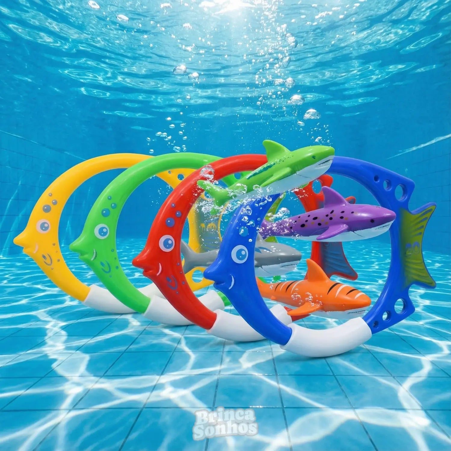 Prepare-se para ver os pequenos mergulhadores explorando, aprendendo e se divertindo como nunca com este incrível conjunto de brinquedos para piscina!