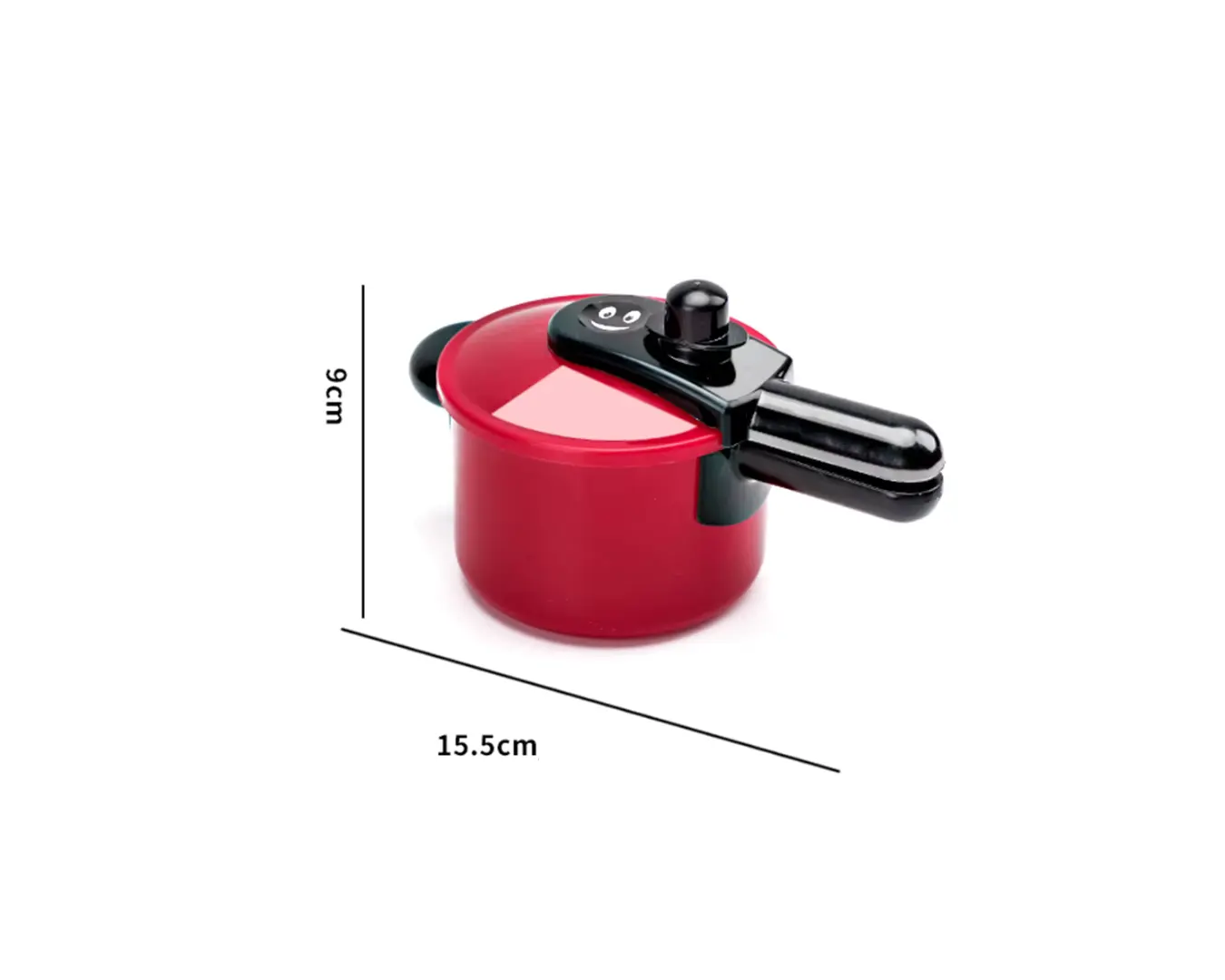 Este brinquedo de cozinha infantil vem com um conjunto completo de panelas com tampa, chaleira, talheres, espátulas e diversos alimentos de plástico para "preparar" refeições imaginárias. As peças são leves, fáceis de segurar e com bordas arredondadas, para que as crianças possam brincar com conforto. Ao brincar de cozinhar, os pequenos desenvolvem coordenação motora, noção de sequência (preparar, servir, organizar) e ampliam o vocabulário relacionado à alimentação e ao cotidiano.